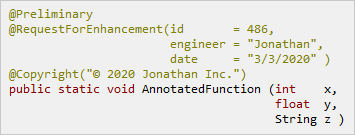 Java now has a parser that can handle @annotations, so if one has parentheses it won't get mistaken for the function parameters. The updated prototype code can handle giving them nice formatting too: